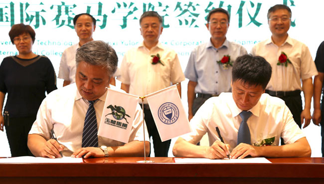 太原理工大學(xué)玉龍國際賽馬學(xué)院是太原理工大學(xué)與山西玉龍馬業(yè)發(fā)展有限公司,本著優(yōu)勢互補、強強聯(lián)合的原則共建的培養(yǎng)賽馬業(yè)和馬術(shù)界高端管理人才辦學(xué)機構(gòu)。2018年8月,雙方簽訂了共建“玉龍國際賽馬學(xué)院”合作協(xié)議,為中國馬業(yè)和教育領(lǐng)域,雙雙填補了國內(nèi)空白。2018年9月雙方在玉龍馬業(yè)舉辦了掛牌儀式。